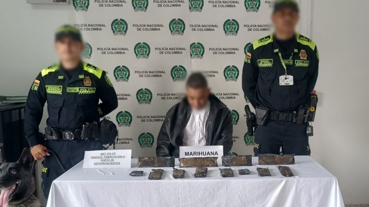 Gracias a la labor de registro y control desarrollada por la Policía Nacional en el Aeropuerto Internacional Matecaña de Pereira, fue posible evitar que un cargamento de m4rihu4na fuera enviado al exterior, gracias a la reacción oportuna del canino ‘Astor’, especializado en detección de narcóticos. Los hechos ocurrieron el pasado 17 de abril de 2025, cuando unidades del Grupo de Carabineros y Guías Caninos, en coordinación con la Estación de Policía del Aeropuerto, realizaban una inspección rutinaria de equipajes. Durante el procedimiento, el canino ‘Astor’ alertó de forma inmediata sobre una maleta con destino final Sao Paulo, Brasil, la cual tenía como punto de origen la ciudad de Pereira y una escala programada en Bogotá. Tras la verificación, las autoridades hallaron en el interior del equipaje 12 envolturas artesanales en plástico negro y transparente que contenían una sustancia vegetal con características similares a la m4rihu4na. El peso total del alijo fue de aproximadamente 2.000 gramos (2 kilogramos), avaluados comercialmente en cerca de 4 millones de pesos. El pasajero propietario del equipaje fue capturado en flagrancia y dejado a disposición de la autoridad competente por el delito de tráfico, fabricación o porte de estupefacientes.